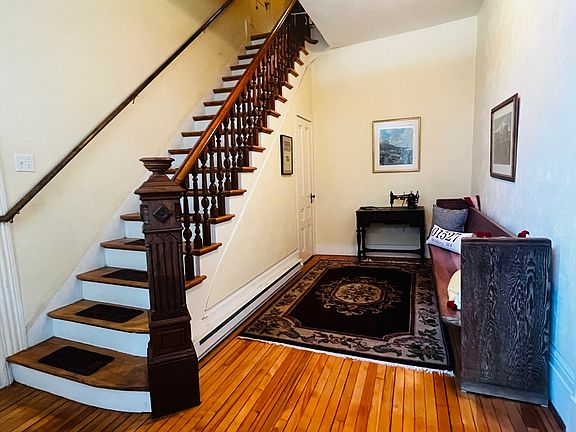 This is a rare find! Charming and spacious 2 bed / 2 bath condo with both easy highway access AND walkability to vibrant downtown Millbury. GREAT location close to Umass medical center, lots of area colleges and the commuter rail to Boston.There are beautiful Greek Revival details such as the columns on the facade and the carved wooden staircase railing. The large light filled living room has wood floors and a decorative fireplace. There is a main bedroom with ensuite and a second smaller bedroom, perfect for guest bedroom or office. Large, eat-in kitchen and a second full bath with laundry complete the unit. Lots of beautiful outdoor space! This is a uniquely special offering.