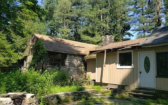 Massive potential at a great price. This small estate property on almost ten acres features main dwelling, guest house and large two-car barn, all built in classic Adirondack style with some Arts and Craft influence. Buildings are an artful meld of stone, full log and frame construction. Main single level dwelling offers large living room with stone fireplace and cathedral log ceiling, three bedrooms, oak cabinet-ed kitchen, formal dining room, and full bath (second master bath is roughed in). Large log barn with full second story and one BR guest log cabin/studio, all on level acreage; remainder of property is forested, sloping down to Shrub Oak Brook, several ponds and a small waterfall. 5.5 miles (15 min drive) from Metro North commuter rail and easy access to Taconic State Parkway for reasonable commute to NYC.