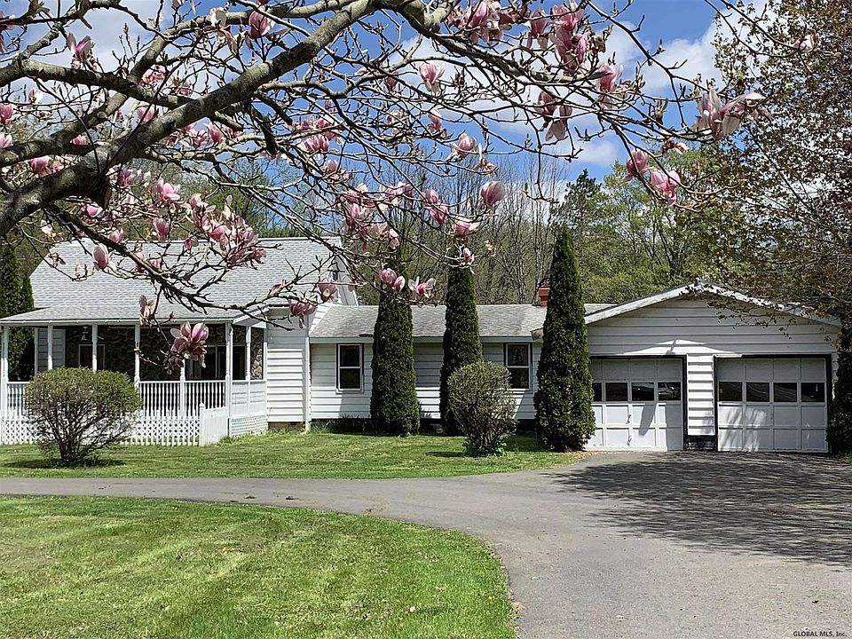 Just reduced, priced to sell. Nestled behind a white picket fence sits a home just waiting for your finishing touches. Owned for years by the same family, it has great outdoor space with a deck, circular driveway, mature flowering trees and a babbling brook nearby. 5 Bedrooms, 1.5 baths, giant family and living rooms with a stone fireplace. 2 bedrooms on the first floor. 4 car garage spaces. New high efficiency Buderus boiler. Newer roof. Just off route 20 with easy access to the Berkshires, Thruway, TSP and I-90. Good Condition