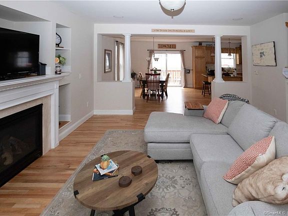 Welcome home. Spectacular Samuel's Crossing Beauty Highly sought-after cul-de-sac location is perhaps one of the nicest in the neighborhood. A welcoming front porch is only the beginning. This impeccably maintained gorgeous home is just ready to move in. Freshly refinished hardwood floors greet you at the door Neutral decor throughout this home. Beautiful open floorplan features living room with built-in nook for the flatscreen above the gas fireplace. Gorgeous light kitchen cabinetry with granite counters and stainless appliances. Large dining area with sliders out to the deck and patio. Wow the great gatherings you can have. The first floor also has a spacious half bath and laundry. Upstairs to the primary bedroom with soaring cathedral ceiling and ceiling fan. You've got a large walk-in closet as well as a 2nd closet for plenty of extra clothing and or storage. The remaining 2 bedrooms are very roomy and 1 even features an additional access to the floored attic extra storage. The entire upstairs is fresh and neutral, wall to wall carpet throughout. Wait you've got to see the additional (fully permitted finished lower level. Invite the whole gang for games or movie night. There's also a walkout stairway to the oversized 2 1/2 car garage. Currently workout area. Extra space for yard equip. or a workshop area. The quiet cul-de-sac location of this home adds to its allure. Check out the yard, patio, fire-pit, & deck. Ready to just move in. Don't miss out on this beauty.