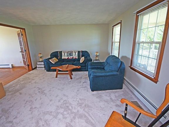 "Multiple Offers" Hip roof colonial features a farmers porch, three season room, storage shed, attached side entry two car garage and a large lot with plenty of off-street parking. The interior has been freshly painted with new carpet and kitchen/bathroom flooring, Eat in kitchen has a large center island with sliders to the three season room. Formal dining with a bay window, french door and hardwood flooring. Central air conditioning, young furnace and well pump. The septic will be upgraded and replaced prior to closing.