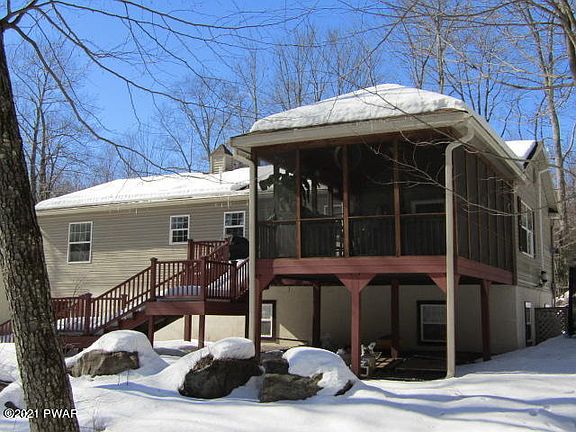 Immaculate raised ranch in a cul-de-sac in the amenity filled Hideout. This home is completely turn-key, sold fully furnished even the dishes and cookware which are like new. The home features an open floor plan with hardwood floors, a propane fireplace, kitchen island, covered front porch, master suite, and 2 car garage. The highlight is a huge screened porch off the upper level overlooking the woods in the back of the house. Also included is a brand-new outdoor sauna that needs the heating unit purchased and installed and a brand-new hot tub that needs assembly. The unfinished lower level has high ceilings ready to be finished into a family room and has plumbing in place for a third bathroom. It could not be any easier, just bring your clothes and start enjoying this beautiful home