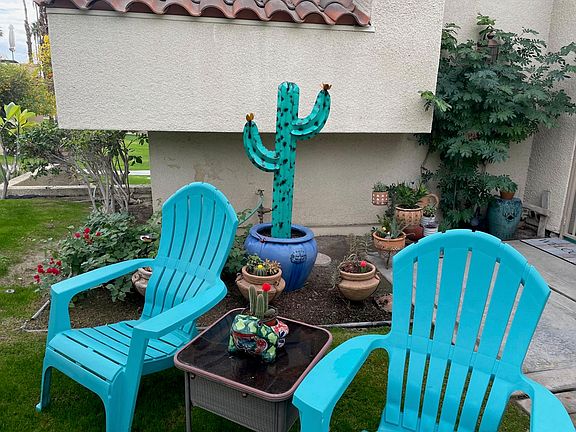 This lovely home with Southwestern decor, located in the prestigious, gated Mission Hills community, offers magnificent, panoramic mountain views from the patio overlooking the spacious community pool and spa. This 2 bedroom, 3 bath home features confortable furnishings and is turnkey accessorized. The home also offers a detached bonus room which can be used as a work space or for guests. Centrally located halfway between Palm Springs and Palm Desert, you have access to the fine dining, shopping and amenities of both communities, including the fabulous El Paseo shopping strip in Palm Desert featuring all of the world recognized brand names. It's also only 5 minutes away from the highly regarded Eisenhower Medical Center offering execptional medical care. Offered as a long term rental, this property is available starting August 1st, 2025. The home is also available for a seasonal rental from October 1st through April 30, 2026. Monthly rent includes utilities with a $250 monthly cap. Call listing agent for availability and pricing. Owner is requesting a 3 month minimum for seasonal rentals.
