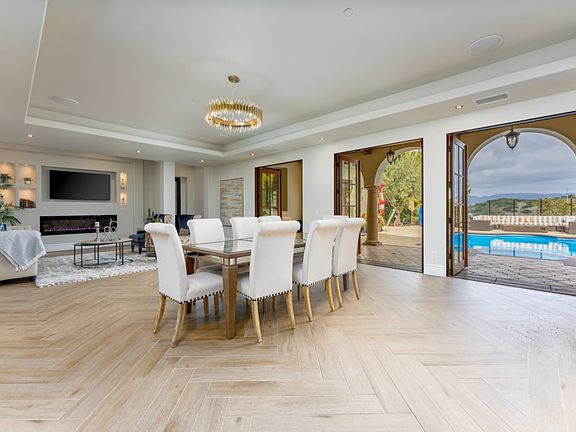 Beautiful Spanish home with forever views of the hills and mountains. Four spacious bedrooms - each en suite, plus separate private office and bonus room. A four car garage. Private pool and spa, and outdoor barbecue island. Located on a single loaded cul-de-sac street.