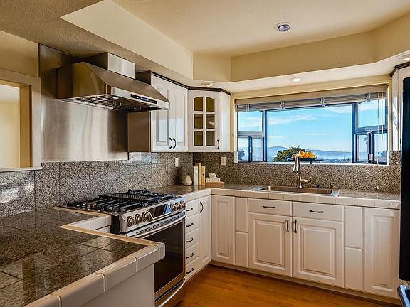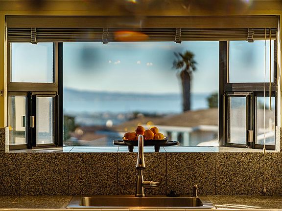 Located on a private cul-de-sac, just minutes away from beautiful parks, the renowned International School of Monterey, and many beaches, including Sand City Beach! This captivating single-level home not only includes a prime location but also offers breathtaking views of Monterey Bay. Every inch of this home has been designed to maximize its spectacular surroundings. Large picture windows frame the stunning Monterey Bay, filling the home with natural light. The open floor plan flows with ease, featuring oak wood floors, a classic brick fireplace, and thoughtful wood details. The kitchen offers granite tile counters, a gas range, and a garden window with water views that makes everyday cooking a pleasure. The outdoor area is perfect for peaceful morning coffees or a summer night BBQ. Just moments from the Monterey Peninsula's hottest spots, this home is about embracing a life of joy, adventure, and accessibility.