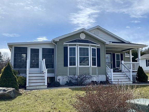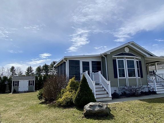 Beautiful 55+ community in the Heart of Westfield. This 10 year young, one owner home boasts 3 bedrooms, 2 baths, attached 1 car garage and beautiful sunroom addition. There is cable in the bedroom, living room and kitchen with hardwood floors throughout most of the home. One floor living with laundry room located right off the garage entry. The $511 monthly lease fee covers taxes, water, sewer, trash removal and the unground sprinklers. With public water, sewer and central air this Double Wide offers low maintenance living with ease. Only available for private showings.