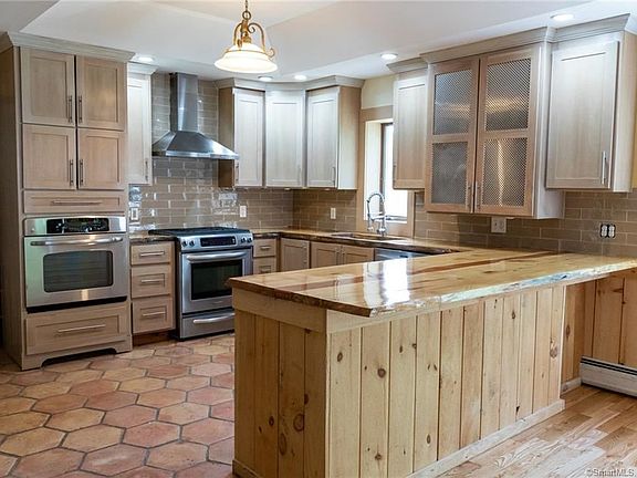 Located in the lake community of Lake Winnemaug, this unique property, surrounded by woodlands offers ample privacy. Lake Winnemaug offers summers full of swimming, boating and recreation, while this home's backyard has been transformed into a childhood paradise with tree house, play equipment, full sized volleyball court, vegetable gardens, and a quaint pond. The interior of the main living area features a newly renovated kitchen with one-of-a-kind wood custom wood countertops, stylish backsplash, stainless appliances and custom cabinetry. The kitchen opens to a great room with plenty of space for a dining area and living room. A beautiful sun porch overlooks the backyard. Also located on the main level is a full bathroom, bedroom and quiet living room. Upstairs, the master bedroom includes a full bathroom with custom tile and walk in steam shower. Two other generously sized bedrooms upstairs share an additional full bathroom with laundry closet. The separate two car garage, houses a huge custom man-cave/workshop and upstairs a large at home office area with custom pine paneling. A car port in front of the garage for additional storage or vehicles.