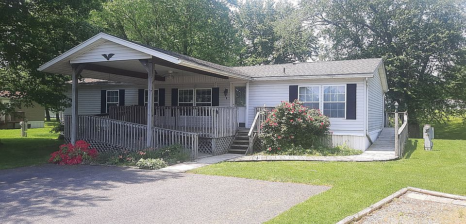 Spacious 15'8"×25'7" living area, a huge 12'6"×23'7" kitchen with plenty of cabinets, large 12'6"×12'9" master bedroom with en-suite featuring a Jacuzzi tub, step-in shower and walk-in closet. Vaulted ceilings. Stove, microwave, refrigerator, washer and dryer all come with the home. Propane heat, wood burning fireplace and central A/C. 200 Amp service. 2x6 exterior walls. This home is handicap accessible with ramps to the 12×16 covered front porch and 12×32 covered back deck. 10×12 shed. Located in Halifax Village Mobile Home Park. Lot rent is $320 per month.