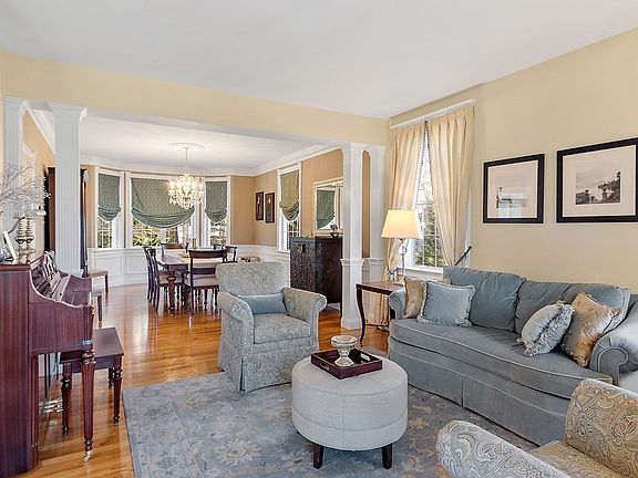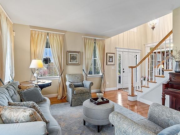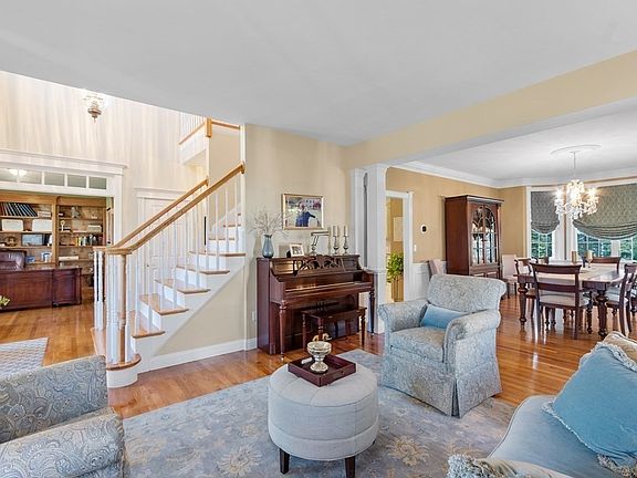 Welcome to this Exceptional Colonial w/beautiful architectural lines, stunning elegance, & fine craftsmanship. The farmer's porch invites you into the handsome 2-story foyer flanked by the formal living & private home office w/lavish moldings & custom built-ins. A sophisticated walk-out bay dining room w/wainscoting and a gorgeous granite kitchen w/abundant cabinetry, island for food prep & seating, and breakfast area w/direct access to the patio. Sensational vaulted & fireplaced family room is perfect for entertaining. The laundry/mud room w/custom cabinetry & entry to the 3-car garage complete this level. Upstairs 4 bedrooms including the luxurious primary suite w/2 walk-in closets & a magazine worthy bath. The LL is exceptional for fun & relaxation; a media rm, home gym, & game rm w/ custom cherry & glass cabinetry wet bar with wine fridge & dishwasher. Outside lush landscaping, stone patio w/built-in firepit, handsome stone walls, & sport court. Patriots Pool Membership available!