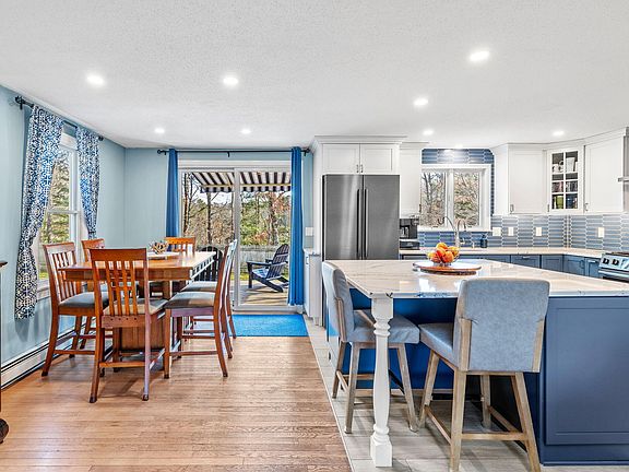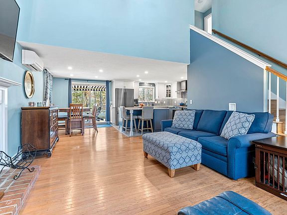 This 3 bed, 2 bath Cape sits on a nicely treed lot, up off the road, creating lots of curb appeal and privacy. You'll love the garage with direct entry during foul weather. A finished room in the LL is walkout and perfect as a home office or TV room. On the main level, you'll be wowed by the recently remodeled kitchen, with shaker cabinets, a large island with quartz counters, beautifully tiled floor and backsplash, and black stainless appliances. The quality craftsmanship and attention to detail are immediately evident as you enter. The dining area offers oak flooring and a sliding glass door leading to a large deck overlooking the fenced rear yard. The living room boasts a cathedral ceiling, wood burning fireplace, and a beautiful bay window. A bedroom and a large bath/laundry room round out the 1st floor. Head up the open stairway to the 2nd level to find the large primary bedroom, with a balcony overlooking the rear yard and the woods beyond. A full bathroom, and bedroom number 3. The large attic and basement utility room offer plenty of space to store all your beach gear. PRIVATE backyard + deck with awning + outdoor shower = Paradise! Improvements list attached!