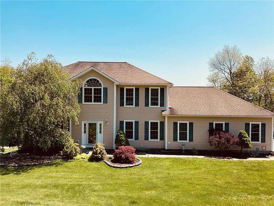 This gorgeous Colonial home features 3 Bedrms, 4 Bathrms & a finished walk-out Basement. This luxurious fl. plan has a beautiful large Kitchen w/ granite countertops, glass tile backsplash, pot filler faucet & a center island overlooking Breakfast Nook w/ sliding glass doors to a Trex Deck w/ mountain view, Living Rm w/ a beautiful gas fireplace, Dining Rm, Office. A Mud Rm and Laundry Rm conveniently located off the kitchen takes you to a 2-car finished garage w/ epoxy fl., stor. cabinets & ceiling mtd racks. Then head upstairs to 2 bedrms, study, including a Master Bedrm w/ Ensuite Bathrm & walk-in closet. Head down to a fabulous walk-out basement to a fenced-in yard, patio w/ stone pavers & firepit perfect for entertaining. Basement offering a Game Rm, Wet Bar, full Bath, Playrm, Gym. The house is meticulously maintained, and it includes a 22kw Generic generator.