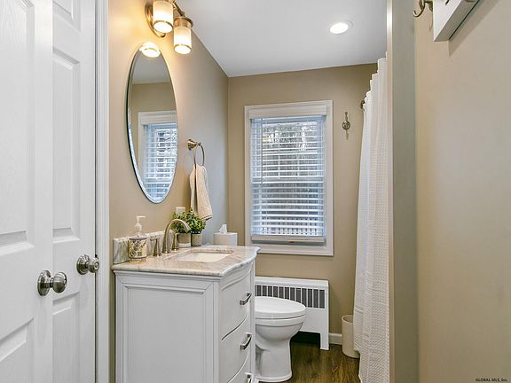 Stunning and immaculately maintained brick Cape situated on a fenced-in, 1.6-acre lot in Guilderland School District! This home has it all. The first floor features gleaming hardwood floors in the living/dining room, 1st-floor bedroom and sliding glass doors lead out to the private back yard. The spacious kitchen offers plenty of counter/cabinet space with updated SS appliances. Home features 3BR and 3 full baths and has a list of updates including a newer roof, furnace, finished rec. room in the basement and so much more. Perfect for entertaining- home boasts hard to find 1.6 acres fenced in yard, HEATED in-ground pool with newer liner, newer deck and more. Inside, you will find an oversized master suite featuring a large bathroom with granite top double vanity/make up station.