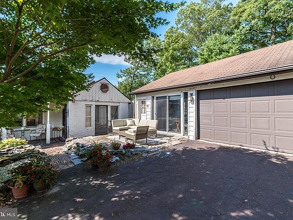 Ahhh, I'm home! Look no further for your retreat from the hustle and bustle of life than this country sanctuary. Located in Salford Twp and desirable Souderton School district, this charming home began life as a one-room schoolhouse in the 1890s. With no historic restrictions, modern additions have honored the history and created space for a multi-generation family, home-schooling, office...whatever you need. Entry foyer has vaulted ceiling, skylight & glass doors to a stone patio. The Laundry is conveniently tucked off the foyer. The enclosed porches (one heated) allow the family to spread out. In cool weather, you can gather around a wood stove in one living space or a fireplace in another. A recently renovated kitchen includes new cabinets, granite countertops, and hardwood floors. The main level has a full bathroom with tile and whirlpool tub. The Office could be converted into a bedroom, a home office or an in-law suite. Upper Level has the Owner's Bedroom with a brick accent wall & vaulted beamed ceilings. Bedroom two can easily return to being a 4th bedroom by re-installing the divider wall that was removed. (The two bedroom-doors are still in place.). Bedroom 3 and a hall bathroom complete the upper level. The spacious garage/workshop with attic storage is ideal for crafters or hobbyists. A fenced "secret garden," established plantings (including a grape vine, blueberry bush) and raised planting beds give the avid gardener room to grow. Adjacent to the garage is a storage shed and potting shed. Additionally a "garage" for wood or yard equipment. Plenty of room for fun outdoor gatherings, ample parking , and 1 acre of land which can be adapted for your lifestyle. Add a few chickens for an even more country feel while still just minutes from major routes and amenities.