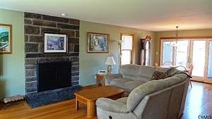Oversized Ranch on a Beautiful Double Lot just minutes from I-90 and Albany. Open Floor Plan with Refinished Hardwood, Fireplace,Spacious Kitchen. New Deck, with Patio,Big Bedrooms and plenty of Closets. New Furn/AC and Some Newer Windows. Custom Tile in 1st floor bath. Finished Lower Level offers Family Room with Egress window, bonus room. Extra Large Garage (fits an SUV or Truck) offers Easy Access to Lower Level that also features Updated Bath
