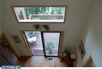 Desirable, spacious, bright & sunny end townhome in the Clusters at Runnymeade Farms. Enter through a private garden paradise into 2 storied entrance foyer with skylights. Living Room with commanding stone fireplace, Dining Room cathedral ceiling and sliding doors to private tree top deck overlooking specimen trees. The bright eat-in kitchen has a butcher-block island, large pantry and entrance to 1-car garage. Hardwood floors in foyer, hallway and dining room. Powder room completes the main level. The second level offers a Master suite with separate dressing room and his/hers closets. 2 add~l bedrooms with plenty of closet space and full hall bath. Open loft perfect for office or den. Walk out lower level can easily be finished and offers custom cedar closets, plenty of storage and sliding doors to another patio to enjoy the outdoors. Laundry is currently housed there but can easily be moved to the main level. Reasonable Homeowners Assoc fees of $240.00 per month include community pool, walking trails.