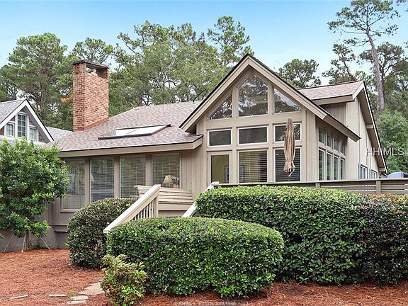 Beautifully remodeled all one level 3 br/3 bath home on prime Harbour Town lot viewing the 2nd fairway. Wood and tile floors, high vaulted wood paneled and smooth ceilings, Carolina room, tastefully furnished in fun vacation décor. Very sunny and light, fireplace, large open air deck. Storage area. Potential for garage. Elevated construction. Great rental or second home. No condo fees. Great opportunity in the prime neighborhood of only 11 homes.