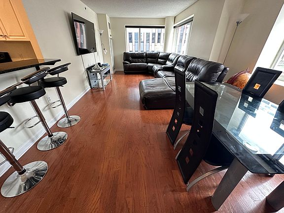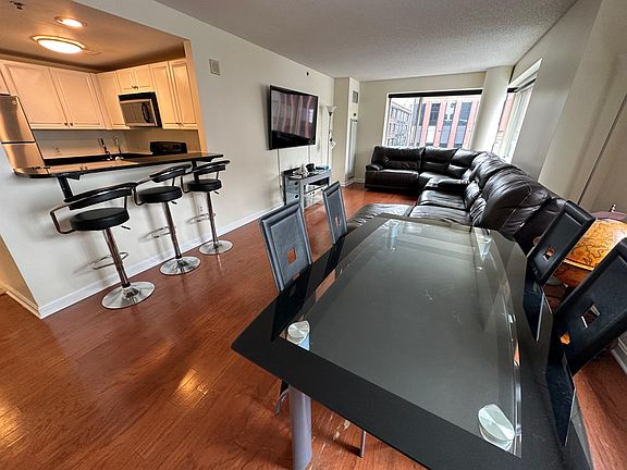 LARGE partially FURNISHED CORNER two-bedroom unit with WOOD FLOORS THROUGHOUT!! RENOVATED kitchen with stainless appliances and granite counters. Updated bathrooms! Price includes one valet parking space washer/dryer in the unit. Building amenities include 24/7 concierge and valet parking,on-site property management,gym with lap pool and hot tub,movie room, gathering and event room, complimentary shuttle service, laundry dryclean pick up and drop off. Beautiful North Point Park in front of the building. Whole Foods close by. Steps to Charles River and Cambridge Crossing! No smoking, no pets. Rental reference needed. There is a broker fee equal to 1 months rent with all rentals. Renters pay for electricity & internet. Hot water and air circulation are electric. Valet parking for one car is included.