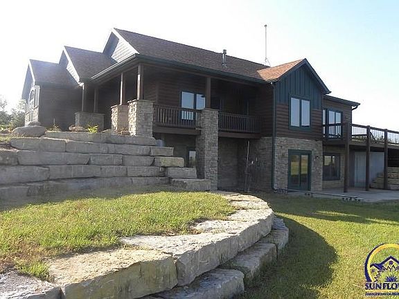 A piece of paradise, just 12 min to Topeka or Lawrence. This 10 yr old custom built home on 25 acres is the perfect family home. You'll all have room to roam with 6BRs, 4BAs, and lg living rooms on each level. The quality inside and out will please even the pickiest buyer! If you want a home with beautiful views, a peaceful and private setting, quick access to Topeka or Lawrence you need to tour this beauty. Another bonus.... only 1/2 block of gravel! 45th and Stubbs S. to 89th then E is all blacktop!