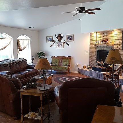 Step into this rambler nestled in a wonderful neighborhood, and you’ll feel right at home. This home has interesting features such as vaulted ceilings in several rooms, skylights, and arched antique doors in the dining room. French doors open from the kitchen/family room onto the spacious covered patio in the fenced hack yard. The master suite is a private sanctuary with a den that opens onto the patio. The flooring throughout the entire main living space is tile that resembles oak hardwood. Both bathrooms also have tiled floors and antique dressers converted to vanities for added charm. Winters are cozy with the 2 fireplaces, one with top of the line Harman iron electric start pellet stove. The fireplace in the living room is plumbed and ready for your gas insert or another pellet stove. Front sidewalk replaced last winter with heat system to keep you from slipping on ice. This is a very low-cost system and there is no step into the house. New gas furnace was installed 2017 along with all new kitchen appliances and new gas water heater just installed. Last winter, the kitchen vent was replaced with a convection/microwave above the stove. The spacious yard is fenced, has a large storage building and underground sprinklers. The property is served with share of Ridgeview West Water Association irrigation water saving you big with a one-time fee of less than $90 for entire season this year. There are no HOA fees associated with this property. This home is very comfortable and inviting, located on a peaceful dead-end cul-de-sac in one of the nicest neighborhoods in Yakima.