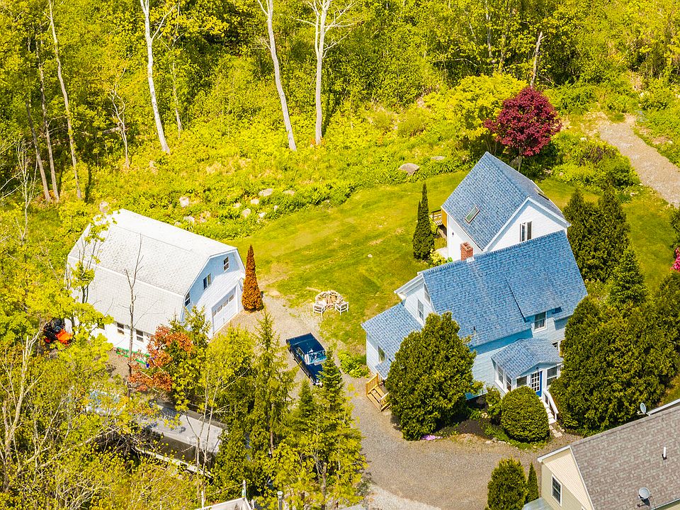 At the end of a dead-end street and only minutes to downtown Camden, this sweet bungalow is tucked away in its own private nook, surrounded by nature. The main house has many original details still intact - wood floors, a farmhouse sink and glass front cabinets, a window seat in the living room, wainscoting, a brick fireplace, and two enclosed porches--all of which add to a vintage vibe. There is an attached, recently improved, 2-story 550+/-SF in-law apartment with its own private entrance and parking area, along with a recently upgraded deck. Built in 2004, the apartment is currently an income-generating registered apartment with the town and has a 10/10 rating on VRBO. If you're looking for additional space, it could easily be folded into the main house. If that isn't enough, the 2-story 24x26 double bay garage (also built in 2004) has radiant heat and A/C, and is a wonderful space with so many options — work from home, a great yoga and self-care space, an in-town studio, hangout room, or ...divvy it up - so many possibilities. Being a short distance to the Harbor, Laite Beach, Aldemere Farm, Rockport Harbor, and the YMCA, this location epitomizes in-town living! This very special property can be a forever home or a great investment opportunity. (Appraiser established SF for the main house & apt. Heated room above garage measured by Seller at approximately 491SF.) Fiber internet ready.