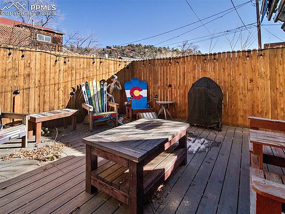Are you looking for that Minimalist lifestyle, look no further! Located in the heart of Manitou close to shops and hiking trails. This may be a little cottage but as you see in the photos there is plenty of room for your collectables/hobbies. Leave no space unused, need more storage, this home is complete with 2 large sheds. Fully fenced with privacy galore. Entertain or listen to nature on the large deck in the backyard. If you are in need of a parking space, take down the split rail fence and voilà. New water heater in 2020 and maple wood countertops in the kitchen. Easy walk to downtown Manitou Springs and Williams Canyon trail!