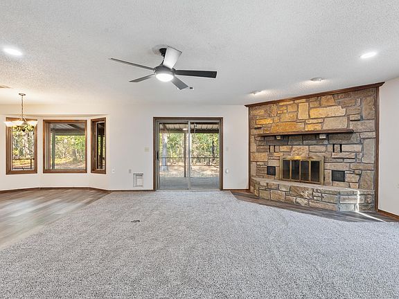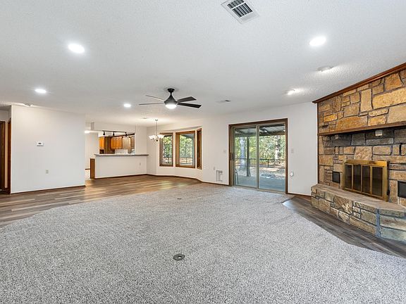 Welcome home! This 3-bedroom, 2-bath home is close to the west gate and features an open floor plan with fireplace and NEW FLOORING (Oct. 2024) and NEW ROOF (Nov. 2024)! Features include a formal dining room, eat-in kitchen with new stove and dishwasher, refrigerator, washer, and dryer. The master bath has a walk-in shower and tub with shower. This home has new mini-blinds, recessed lighting, and fans. Additional features include a garage with a workbench, a closed-in room for storage or an office, and a covered back porch wired for a hot tub. Handicapped access is available! Located on a dead-end road, this home offers convenience and serenity. Renovations in 2021 include new flooring, light fixtures, appliances, paint, toilets, and mirrors and a new HVAC installed in 2023! Schedule your showing today!