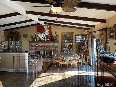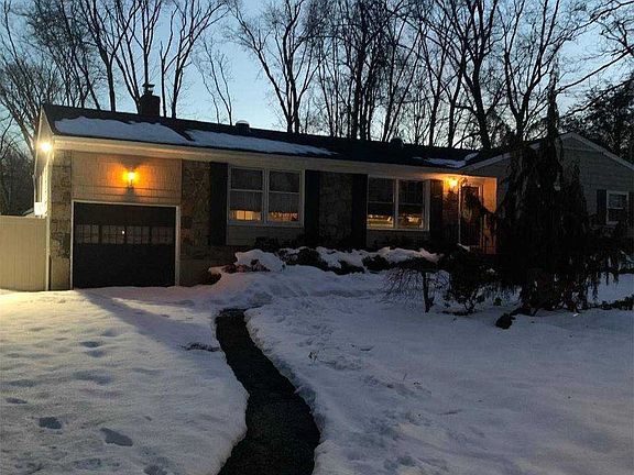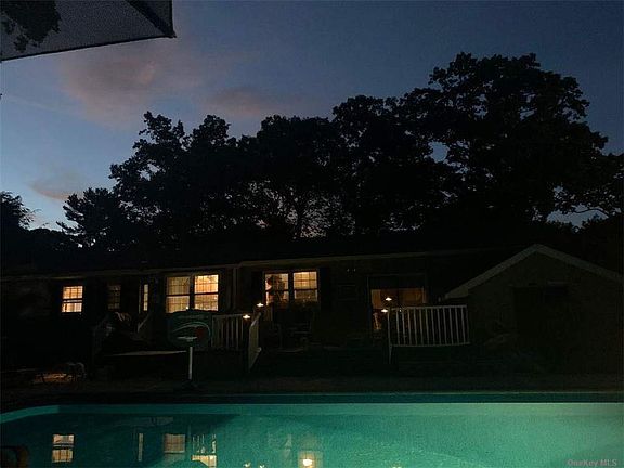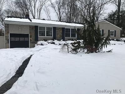 Great value, large Ranch in the Forestwood section of Smithtown, 3 bdrm, 2 full bath Ranch, open floor plan with vaulted ceilings. den w/fpl. updated roof, some windows updated, Front is vinyl sided. beautiful in ground pool with new liner, Surrounded by pavers, Perfect .59 acre of flat and private property. Basketball Ct. Huge partially finished basement. Dog grooming bathtub. Huge fenced dog run on right side of property.