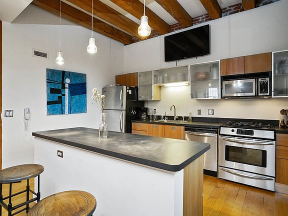 Amazing L-shaped 1266 square foot True Loft with separate sleeping alcove at the Caproni Lofts! Sunny corner unit with 6 windows in a building built in 1900, converted to condominiums in 2003. Open space with a myriad of floor plan options. Kitchen with island and stainless steel appliances. Elevator building, exposed brick, original wood beamed ceilings, maple hardwood floors, central air, oversized gas fireplace, impressive mahogany walk-in closet with cedar lined drawers and other custom built-ins. In unit washer/dryer, on-site secured bike storage, and common outdoor space complete this wonderful sales offering. Recent upgrades include new gas furnace & air-conditioning condenser, Jenn-Air range, dishwasher, washer/dryer, water heater and custom window blinds. Great location, near BMC Campus and on the Silver Line. Truly a unique home! Tenant has lease until June 30, 2024. 24 hour notice strictly needed.