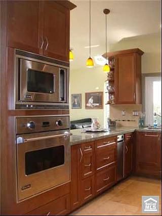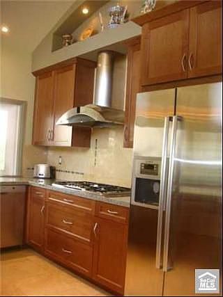 Blow Out Sale! Single story remodel (about 5 years ago)feels like a new home. Kitchen and hall bath remodeled to the studs. Newer custom cabinets, gorgeous Italian travertine flooring with mosaic inlay. Top of the line Viking, Bosch & Thermador 5 burner gas cook top appliances and most beautiful slab of Italian granite available. Full Italian limestone backsplash with mosaic accent, also used on fireplace. Large overhead fan for cooking. Wall cut with inset and well lit designer shelf to display