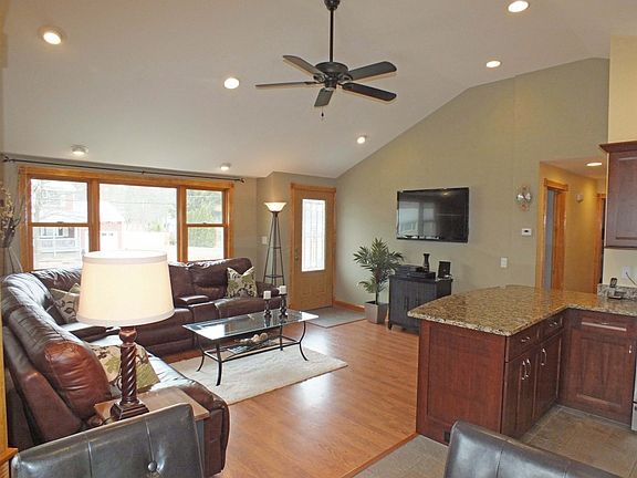 Gorgeous and unique is this contemporary remodeled ranch plus separate in-law apartment. Walk into a spectacular open great room w/cathedral ceiling, updated kitchen cabinets w/granite counters and newer appliances, dining area and living room, plus two bedrooms including a master suite w/walk-in closet and full bath, plus main bath; finished lower level with an additional bedroom, full bath, and family/media room. The mudroom/laundry room connect to the private 2nd story in-law or au pair suite w/two bedrooms, full bath, kitchen, living room all w/cathedral ceilings, and a balcony deck overlooking the back yard. Attached two car garage, beautiful fenced back yard w/stone patio and fire pit, a perfect place to relax and entertain. This home offers a variety of beautifully updated and energy efficient living spaces, and could be a perfect solution to your special housing needs all located in a desirable neighborhood abutting town land.