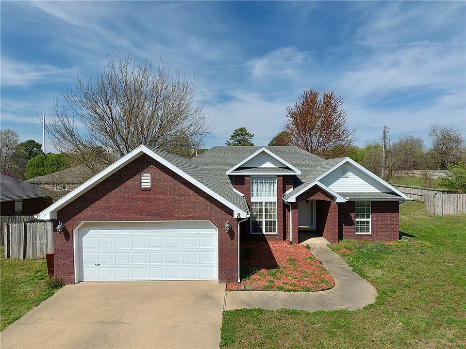 Gorgeous brick Farmington home locate just minutes from I-49 on a large corner lot. Boasting three bedrooms and two baths on a split floor plan, this home also features elevated ceilings throughout the main space which makes it feel much larger than its 1480 sq feet. The back yard more spacious than most you'll find in the area and comes with an oversized detached shed for storage and great outdoor entertaining area provided by an extended covered deck. Refrigerator conveys with the home. Home being sold AS-IS