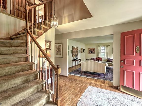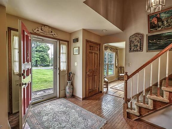 Center Hall 1971 Colonial with upgrades to 2015 is nestled on 1.8+ level acres with mature trees and landscaping. Two story foyer leads to formal living and dining rooms presenting hardwood floors and over- sized windows that capture the sunlight. Cozy country kitchen offers wood cabinetry and granite counter tops, picture window, under cabinet lighting and sep breakfast area. Family room w brick wall masonry, wood burning fireplace w barn beam mantle and beam ceiling, hardwood floors, floor to ceiling windows and door to the exterior. All bedrooms have hardwood floors. Six panel wood doors throughout. Master bedroom with en-suite bath. Main bath features double sink, marble top vanity and ceramic tile. Neutral decor
