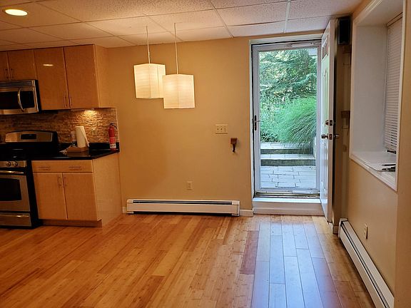 Clean and well kept ground level apartment with private entrance around back. Kitchen/family room combo, den, bedroom and full bath. Unit has custom kitchen cabinets. Stainless steel appliances include dishwasher & 5 burner range. Refrigerator included. Hardwood floors and pocket doors. All utilities payed by landlord, including gas, electric and cable/wifi. No washer or Dryer available. No smoking. No pets. 1 year lease. All utilities payed by owner including wi-fi, electric, gas, trash, water and waste. Tenant insurance required. 1.5 months security. Tenants pay first $150 of repairs. Any clogged drains are paid for by tenant. Tenant pays 1 month commission.