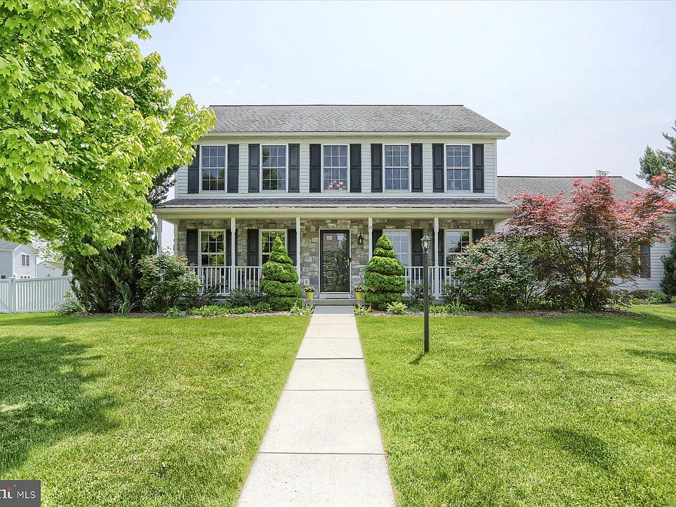 MEADOWBROOK FARMS. CUMBERLAND VALLEY SCHOOLS. With almost a half acre corner lot, this home boasts a total of over 3000 square feet, including finished lower level. The attached two-car side entry garage hosts extra tall garage doors and ceiling so you can drive right in with your kayak or small storage box still attached to the top of your car! The front and backyards are plumbed for irrigation, which is fed by a separate watering system from a well. The fenced in backyard features a concrete patio, a composite deck, privacy landscaping and plenty of grassy areas for a feeling of calm and peace. For those who love organic produce and /or gardening, the raised, organic beds along the fence have already been planted. Your produce has already sprouted and should be ready to pick by the time you move in! Strolling on into the home, you will find multiple rooms that can be used for various lifestyles - the possibilities are endless. Feel secure with both a RING doorbell system, allowing live views 24/7 from any location and a SIMPLY SAFE security system installed on the main level. All flooring on the main level and the Primary bedroom on the upper level is HiEnd, Luxury AMTICO flooring. The central Vac on the main and upper levels, complete with kitchen dustpan/toe kick, screams convenience! No more worries about where to store everything! Extra closets, 2 attic areas and a room in the lower level provide ample storage. All windows throughout the main and upper levels have been installed with customized cellular shades for privacy. The main level consists of kitchen with Professional grade SS appliances, extra counter space with eat-in island, lots of cabinets and two pantries; family room with gas fireplace; sunroom; dining room and living room. Upstairs you will find 4 bedrooms, granite counters and comfort height vanities in the baths. There is a walk in attic with the possibility of making it into another room, presently being used for storage space. Heading to the lower level, you will be pleasantly surprised at the finished space: bedroom with a whole wall lined with closets and a walk-out staircase complete with an elevated full bath with oversized shower, tile flooring and linen closet. Most of the LL area flooring is vinyl plank except one room which has carpet and a closet, which could be transformed into another bedroom with an installed egress window. Extra features include a MANABLOC PEX plumbing system, sump pump with battery backup and alarms, whole house water filter system and a dehumidifier. This home is a joy to see and show!