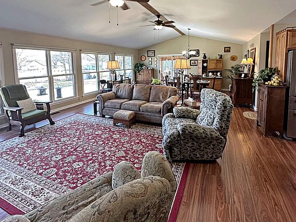 West Boggs Lakefront home offering spectacular views and your own private dock. As you enter this spacious home you will immediately fall in love with the wall of windows where you can enjoy the beauty of all four seasons in the spacious living area. The open living room with gas fireplace, dining room, and kitchen with quartz countertops, tile backsplash, abundant counterspace, and island bar make this the perfect home for lakeside entertaining. The Primary Suite features an extra large walk-in closet, full bath, and french doors with access to the rear deck. Tucked privately down a separate hall you will find two additional bedrooms and a full bath. You may enjoy your coffee or a book while relaxing in the enclosed sunroom with abundant light, lake views, and direct access to the second rear deck. The finished basement offers additional room for storage, family fun and with the new updated egress window, an additional bedroom and half bath. The attached three-car garage allows plenty of storage and has a large concrete driveway. Outdoors you will enjoy a large screened shelter for storage or entertaining and level yard that leads down to the water's edge where you will find your private boat dock.
