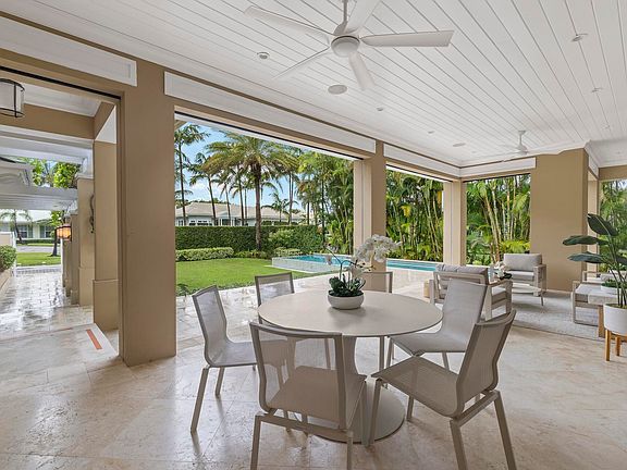 This Bermuda-inspired custom residence, built in 2014, blends classic architectural charm with modern sophistication. Featuring 3 bedrooms, 3.5 baths, and a spacious light-filled floor plan, the interiors are adorned with custom cabinetry, tongue-and-groove ceilings, travertine, and rich wood flooring. Meticulous millwork and abundant storage enhance both style and practicality. Designed for effortless indoor-outdoor living, Phantom Screens open to a private saltwater pool and patio retreat. This home features tank and tankless water systems, integrated speakers, and beautifully crafted custom storage throughout. Recent upgrades include three new AC units and interior and exterior painting. Perfectly situated east of AIA within the coveted community of Ocean Ridge, the property provides deeded beach access and a premier location minutes from Atlantic Avenue and Palm Beach.