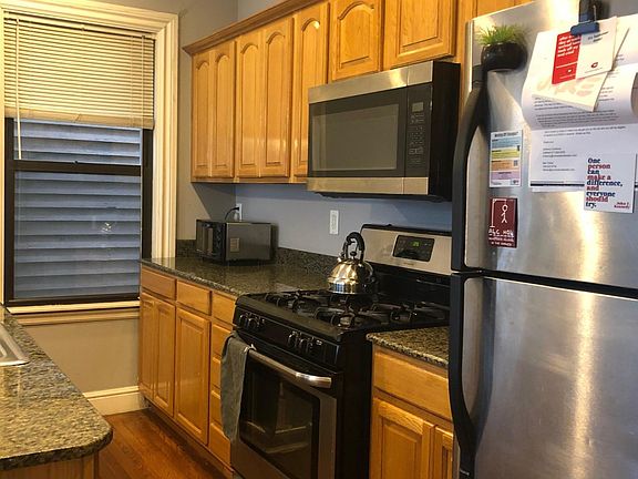 Very Large 3 BD 1 BA with open kitchen/living room layout. Hardwood floors, open kitchen concept with large granite island with breakfast bar, stainless steel appliances. Huge living room boasts great sunlight from the street-facing bay windows. All bedrooms are large and equally sized with ample closet space. text 3 three 9 - 2 two 2 - eight seven 30 to set up a showing.