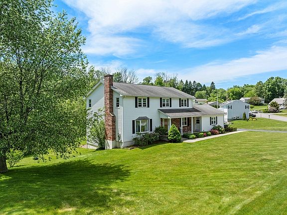 Beautiful 5-bedroom, 3-bath colonial on a cul-de-sac in Auburn's Pakachoag area. Lovingly maintained by its original owners, this home features a covered porch leading into a welcoming foyer with an open staircase. A large living room with a propane fireplace and sunny bay window connects to the dining room. Exquisite scrolled ceilings designed by a master craftsman adorn the home. The eat-in kitchen offers ample space and opens to a heated sunroom, perfect for those relaxing moments. Conveniently located off the kitchen, this home features a large first floor primary suite. Upstairs, a versatile bonus space at the top of the stairs can be an exercise room, office, playroom, or game room, extending from a large bedroom. Three more spacious bedrooms and a full bath complete the second floor. The full unfinished basement includes a cedar walk-in closet and laundry. Being sold as-is.