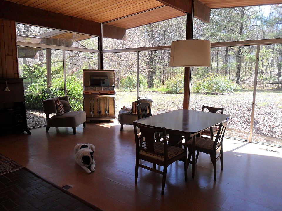FRANK LLOYD WRIGHT WOULD BE PROUD!! THIS ONE IS A MUST FOR THOSE LOOKING FOR THE OPEN DECOR AFFORDED BY THIS ONE OF A KIND HOME--ALL GLASS IN THE MAIN AREAS!! 4 NICE SIZED BEDROOMS WITH GOOD CLOSET SPACE. ENTERTAINERS DREAM WITH A WET BAR AND FIREPLACE. LARGE SLIDERS OPEN TO A WONDERFUL DECK THAT OVERLOOKS APPROX. 2.9 ACRES OF THE MOST PRIVATE,LEVEL PROPERTY YOU CAN IMAGINE. HORSES ALLOWED AND THE PROPERTY IS COMPLETELY FENCED WITH A BARN!! LOTS OF UPDATING WITH FRESH PAINT IN AND OUT (INCLUDING KITCHEN CABINETS),AND NEW CARPET. BEAUTIFUL CEDAR POST AND BEAM CONSTRUCTION WITH LOTS OF BRICK ACCENTS. VERY SPECIAL AND UNIQUE WITH EASY LIVABILITY....