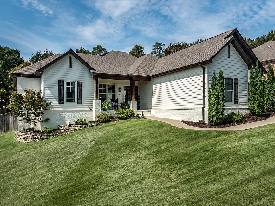 Welcome to this charming, custom built home located in the highly desired community of The Ranch on a private cul-de-sac. This home lives like a single story open-concept floor plan that seamlessly connects the living room, dining area and kitchen. The kitchen is a chef's delight with a gas cooktop and double ovens. Split floor plan with the primary suite privately located overlooking the beautiful backyard with a beautiful coffered ceiling, walking closet with built ins. Two spacious guest bedrooms with full bathroom between them. Upstairs features a large game room with fabulous attic access. Special features include a home office, a laundry room with a dog wash, a FEMA rated safe room and an oversized two-car garage with additional parking pads. Amenities include hardwood floors in the main living spaces, 10 ft ceilings and 8 ft doors. The backyard offers a covered porch with a wood burning fireplace and a natural tree line behind the home limiting your views of your neighbor. This community offers a nature reserve with hiking trails, 2 ponds fully stocked, a boat launch to the AR River and a playground zoned for Don Roberts, Pinnacle View and Central High Schools.