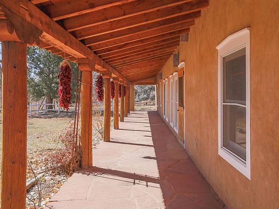 Magic Exists in El Prado, New Mexico ~ Actual magic exists right here in the Land of Enchantment privately tucked away at the end of a quiet road in coveted El Prado, just minutes from Taos Plaza, the Rio Grande river, and Taos Ski Valley. Upon your first experience at this true storybook residence, your jaw will drop and your eyes will light up as you become captivated by some of the most stunning and immersive views of our breathtaking mountain range beyond lush, grassy, and red willow filled meadows. El Prado, which translates to "the meadow" in Spanish, is a very special region here in the sacred valley first occupied by the Tiwa, or Red Willow People, who also happen to be the direct neighbors on the adjacent property which is a privilege of its own; it is a pure joy getting to regularly observe majestic galloping horses, with Wheeler Peak and El Salto as a back-drop while Spring water flows in the acequia waterways through these 6.5 acres. As for the home and guest home located on the land, the magic only continues with a remarkable and traditional 4 bed 2 bath adobe territorial, and separate 1 bed 1 bath cottage inspired guest home. After parking under the extra tall pergola ideal for recreational vehicles you will be enamored by an impressive 80ft long covered flagstone portal (porch) with NM red chile ristras hanging from hand carved beams & corbels. To the left, a contained front yard with a white picket fence, the acequia, and elevated views of Pueblo Peak. To the right, a peaceful entryway through a hand carved door and screen door into a brightly lit foyer where you are greeted by an antique Glenwood Parlor wood stove, and more elegant custom carved wood. All around you, classic Southwest finish-work from the radiant heated saltillo tile floors, up the traditional mud & straw plastered walls that are a foot and a half thick, a corner kiva fireplace with a bancito, up to the un-carved viga, beam, and wood plank ceilings, it is if you're taking a subtle step back in to time, yet with all the modern luxuries. The flow and fengshui of the split-floor plan couldn't be more perfect with plenty of space in each of the rooms and adequate storage for all of one's belongings. The bedrooms themselves are well lit through numerous windows with classic white painted trimming, especially the primary bedroom which is quite the sanctuary. The kitchen and dining room contains vibrant indigo turquoise tile on the countertops up the backsplash, and is a place where tasteful memories will be created preparing and enjoying meals throughout the day with family & friends. The sunroom with floor to ceiling south-facing windows will be a popular place to bask in the sun, reading your favorite book, surrounded by your own indoor tomatoes. The immediate yard couldn't be a better place for pets and children to play, and the greater yard will serve as the perfect home for horses of your own, or any other animal that you hope to raise for that matter. The immediate guest home with tall ceilings, hardwood floors, and antique appliances is privately situated and strategically placed to absorb lots of natural sunlight throughout the day, and provides the same magical views as the rest of the residence. The storage rooms attached to the guest home will be perfect for keeping all of your recreational gear, or perhaps can be converted to more livable spaces, along with the third cottage style storage room beside the pergola. This amount of acreage also means enough space for a multi-family property to keep all the relatives close by. It's impossible to put into words the magic and all the wonderful potential of what 8 Painter Road can become, therefore you must come experience it all for yourself, Summer has just begun.