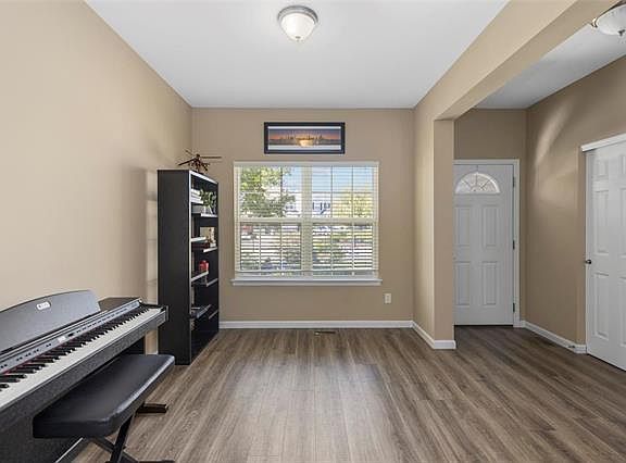 Located in the sought after Francis Howell school district, this 4 bed 3.5 bath, open floor plan home with finished basement is sure to please! The main level features newer engineered hardwood floors, den (or formal dining room), living room with gas fireplace, powder room, main floor laundry, an additional office space, and eat- in kitchen with a beautiful bay window that overlooks your easy to maintain composite deck with a gorgeous view! The kitchen boasts 42' staggered cabinets, kitchen island and pantry. The upper level consists of 2 exceptionally sized bedrooms, full hall bath and large Master suite with separate tub/shower and double vanity. The finished lookout basement (2016) includes a family room with wired in surround sound, 4th bedroom and another full bath, plus ample storage! Updates include some newer energy efficient windows, energy efficient sliding bay door with built in blinds, Keyless front door and garage door entry and irrigation system.