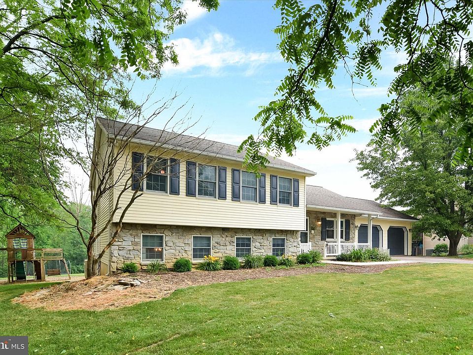 This stunning split-level Cornwall Bourough home offers ample space and a desirable location in beautiful ''Goosetown.'' Situated on a generous half-acre lot, the property is conveniently positioned across from a recreational area. Nature enthusiasts will appreciate its proximity to the Lebanon Valley Rail Trail, allowing for easy access to outdoor activities. The kitchen is complete with all appliances, seamlessly connected to the main level living room and dining area. The upper level has a full bathroom, and three bedrooms, including a primary bedroom with its own private full bathroom. The first lower level features a spacious family room adorned with a fireplace and sliding doors that lead to a back patio and a spacious back yard. Additionally, this level includes an office and a large laundry room that also serves as a half bathroom with a large laundry sink. The second lower level is fully finished and offers two versatile rooms that can serve as additional fifth and sixth bedrooms, both featuring closets. The property provides ample parking with a two-car attached garage and additional storage in a detached shed. The backyard is adorned with mature trees, providing shade and privacy. Showings to begin on 6/16, schedule today!