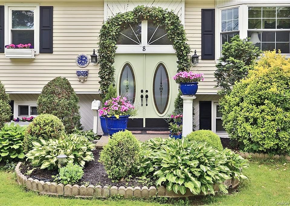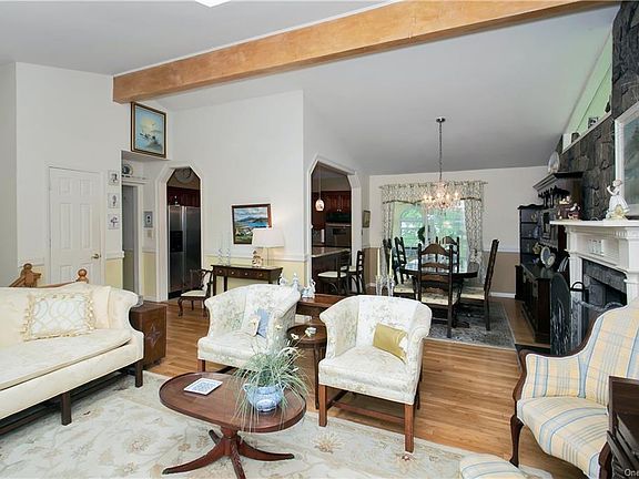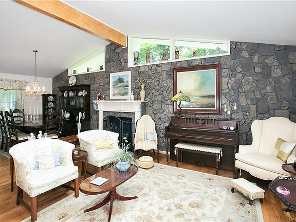 Great contemporary Ranch , sun filled living rm/Bay window, fireplace, wood floors, Dining room , Open floor plan, updated kitchen, Perennial gardens, Down stairs has recessed lighting, Brick fireplace, office, Laundry, utilities, Bar, Powder room, Pool room, Door out to large patio. Two car garage, spot lights in driveway and back yard, Walking distance to the Town pool, library and stores, and near by park.
