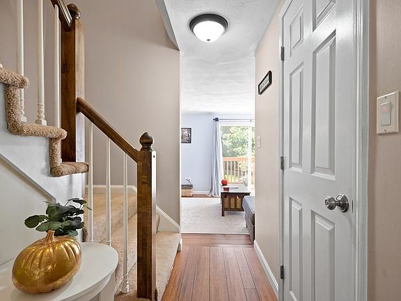 In Real Estate location is EVERYTHING! Adding wooded views out every window and tons of natural sunlight makes it even sweeter. Move in ready PRIVATE END UNIT at Carter Green. Well maintained and turn key, the main floor layout includes a dining area with hardwood floors and wooded views, efficient galley kitchen updated with newer stainless steel appliances, oversized living room also with hardwood floors and sliders to a good sized deck and additional storage. Upstairs has 2 spacious bedrooms with plenty of closet space with a Jack & Jill bathroom and convenient in unit laundry. The one car garage is under and also has additional storage space and mud room area adjacent. Newer paint, flooring, heating system (literally has not been used yet due to this glorious fall weather), windows and A/C condenser. Conveniently located close to Tewksbury schools, library, shopping, and Tewksbury Country Club. A superb commuter location with access to Rtes 495 and 93.