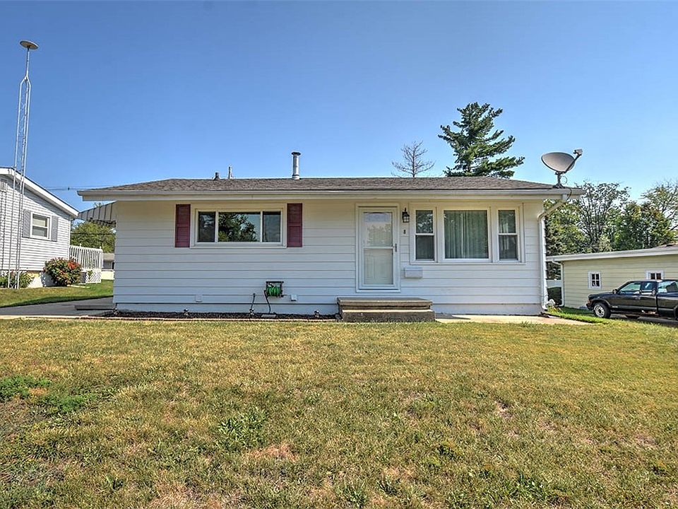 Super cute and updated South Shores ranch! Located close to schools and park this home is move in ready! Hardwood in bedrooms, living room and dining room. Kitchen updated in 2021, roof 10 y/o, garage roof and siding 3 y/o, and HVAC 5 y/o. Has replacement windows and freshly painted main level with new trim July 2023. Relax in the fenced backyard on the deck or paved patio with a built in firepit. Basement is partially finished and includes a full bathroom. Washer and dryer stay.
