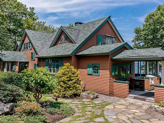 Welcome to Sea Mist, an oceanfront shingle-style home nestled in one of Owls Head's most distinctive neighborhoods. The owner, who had grown up in Maine, was searching for the perfect connection with the water and wide sky views. After 9 years, he found this spot and built his retirement home. Situated close to the water, the property features 405' of waterfront, surrounded by rocky outcroppings for privacy, and a wide, gradual pebbly beach perfect for playing and swimming. The sound of the waves on the beach will present a beautiful background melody to your days and nights. The property faces north, overlooking Penobscot Bay towards Rockport, the Camden hills, North Haven, and far beyond to Blue Hill and Cadillac.