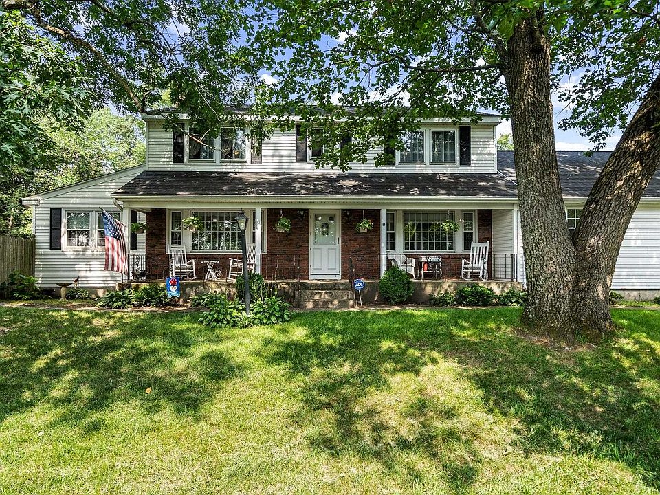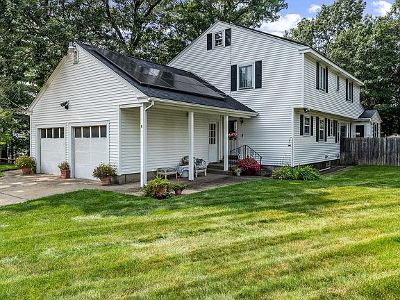 Come see this gracious 4 bedroom, 3 1/2 bath colonial on a corner lot!! Home has a finished lower level, fully equipped kitchen and tranquil patio with abutting gardens all in a fenced in back yard! This home has a secluded feel with lush landscaping. The homes flowing layout is spacious with a wood fireplace in the living room, a separate dining room, an office and playroom off of the living room all great for entertaining your family and friends. And to top it all off it has a fallout shelter in the lower level that could also be used as a cedar closet! Home has newer heat pump that is more cost effective with the solar. Delayed showings start at the Sunday, August 27 open house from 11 to 2 PM.