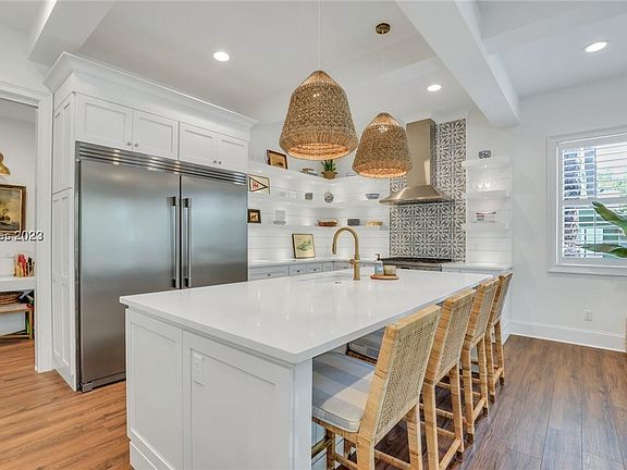 Like NEW home just 4 rows to one of HHI's finest beaches! This custom 5BR/3.5BA home was built in 2021 by one of the island's premier Builders/Designers & offers quality features throughout. This bright & open floor plan will astonish! The first floor features high coffered ceilings, tabby fireplace, & LVP flooring throughout. The kitchen offers separate refrigerator/freezer, quartz countertops, custom cabinetry, wet bar, & large pantry/office area. Take the elevator upstairs where guests have 4BR/2BA. Sweeping porches at front/rear overlooking landscape & pool. Rental Projections over $180,000!! Create lasting memories at 8 Periwinkle Lane! 2023-06-13