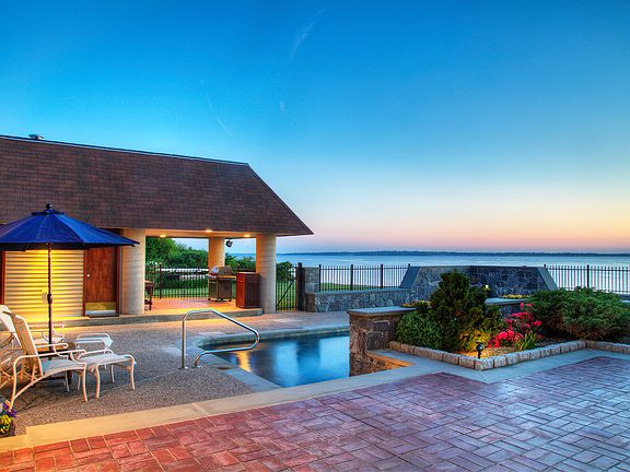 Private WATERFRONT home w/ sunset views overlooking Narragansett Bay! Custom built contemporary designed to showcase the location. Indoor/outdoor living at it's best with in ground pool, water features & cabana. Master suite w/balcony.Roof top deck!